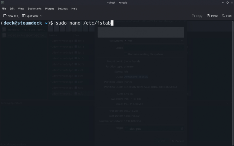 UUID=(UUID입력) /run/media/deck/shareSSD lowntfs-3g uid=1000,gid=1000,rw,user,exec,umask=000,remove_hiberfile,nofail 0 0