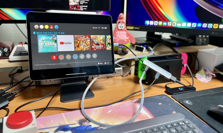 마지막으로 스위치 화면을 아이패드로 송출 한 사진입니다.